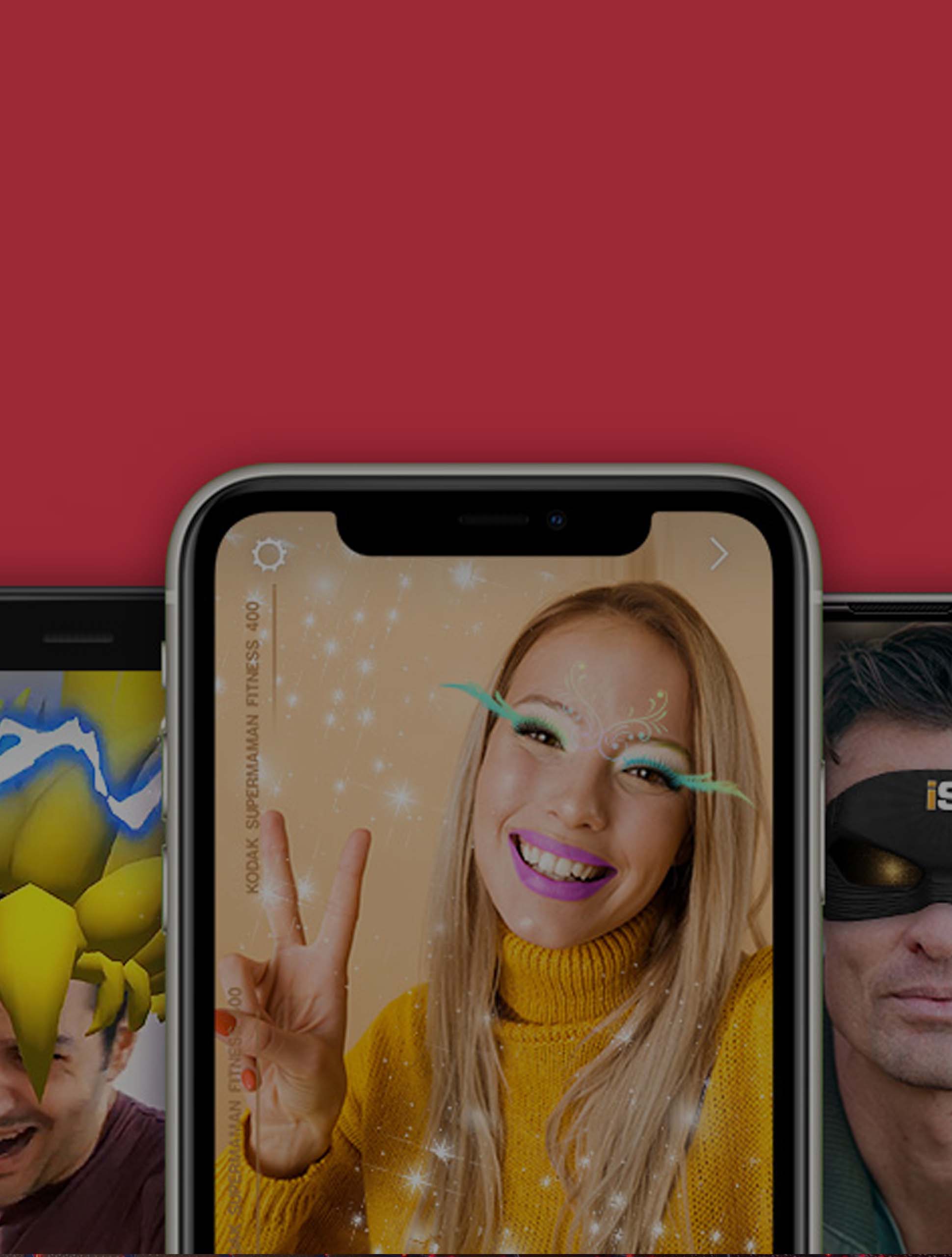 Les filtres interactifs en réalité augmentée, également appelés Lenses, permettent de créer des images ou des vidéos ludiques, pratiques à partager sur les réseaux sociaux (Instagram, Facebook, Snapchat, etc.). Originaux et amusants, ils s’utilisent aisément et se partagent volontiers.